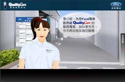 相信一般人都玩過虛擬賽車、虛擬賞車,但有聽過虛擬修車嗎?Ford QualityCare在國內開啟這項首創網路服務,針對一般民眾缺乏對愛車標準保養的專業認知,將QualityCare創新的12項服務流程利用虛擬動畫的方式,讓網友們了解愛車回家的標準服務流程,體驗Ford QualityCare「就是為你用心」的服務。