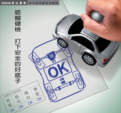 ![]() 愛車在各種路面上行駛,難免導致底盤損傷,以及零件老化、漏油、移位、螺絲鬆動等問題,因此裕隆日產汽車特別規劃了「秋之旅•底盤安全健檢」活動,針對底盤煞車、懸吊、轉向、傳動四大系統,免費提供車主多項原廠專業的深度檢查,為車主解除潛藏的危機,快樂出門、平安返家。