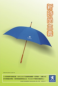 2006年PEUGEOT原廠活動正式起跑,四~五月期間提供車主全系列雨刷片88折優惠。除此之外,購買一組雨刷片時僅加價249元就可將PEUGEOT專屬蔚藍傘帶走,安全與品位一次到位。