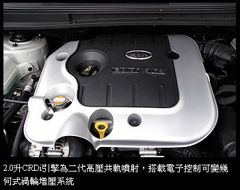 柴油車型首次加入陣容隨著車系的改款,除了2.0升CVVT汽油引擎外,我們這次試駕的主角—2.0L CRDi柴油引擎車款也在提供之列。這顆採第二代高壓共軌噴射系統的柴油引擎也搭載了VGT電子控制可變幾何式渦輪增壓系統減少低轉速時動力輸出遲滯的問題。該引擎也配備了微粒物質過濾器(DPF),其廢氣排放符合歐盟四期環保標準。