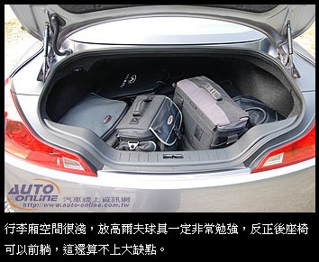 豪華房車等級的精緻內裝與豐富配備![]() 無論從安全配備、視聽娛樂以及內部陳設等方面看G Coupe,根本就是豪華房車的配置,對於喜愛純跑車風格的車迷來說,這一點都不「斯巴達」啦!基礎上和M35一樣豪華的設備,除了飾板採用首次見到的「和紙」紋路鋁面設計,算是很特殊的手法,其他LCD螢幕、自發光儀表、操作介面等都和M35非常接近。