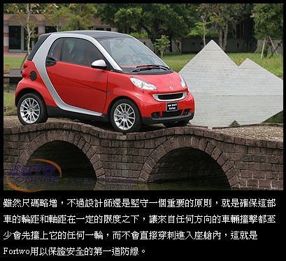 Fortwo卡通造型與鮮艷的色彩是它當初以City-Coupe為名出現在車界讓人驚豔的地方,比起新的名字Fortwo,舊名「City-Coupe」更能顯露整部車的設計原始概念與定位,也因為曾有過這個車名,到現在我們還是很不願意將它歸類在掀背車種裡面;至於「Fortwo」則更能表現出其玩樂本性,也就是當原廠打著經濟、實用、都會特性,卻發現大家更愛的是它的fun car本質而從此改變行銷策略,乾脆連車名也一起改了。