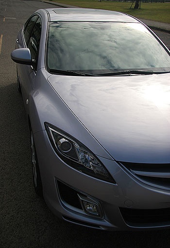 由於新款的Mazda6車身腰線明顯拉高,從車頭往車尾一路向上挑起,後高前低的車身有如猛禽準備撲殺獵物般蓄勢待發。這樣寬車門的設計其實和即將推出的Mondeo有著一定的相似度。若拿出IS250的照片來對照,還真令人摸不清楚到底誰是誰。