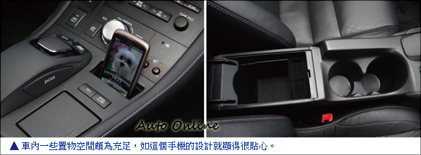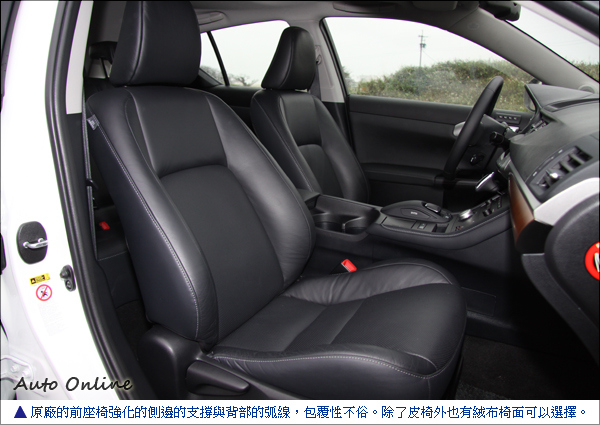其他一些細節的地方CT 200h也都用上皮革包覆,加上縫線的處理提昇質感。其中比較有趣的是它的儀表板與它的中控台操作模式。CT 200h由於是油電復合動力,因此一般時後的儀表板上你看不到轉速表,僅會顯示電力回充的狀態。但一切入運動模式後話面會由藍轉紅,此時可以招喚隱藏起來的轉速表,頗有進入戰鬥狀態的感覺!