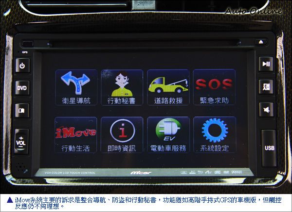 如果各位還記得過去我們M'car 1.3的試駕報導,就知道我們對它的觸控螢幕很有意見;那麼這次的iMove呢?介面來說,似乎有些不一樣了,而且反應速度也改善了,看起來引擎升級,業者也沒忘記把影音系統重整了一番。