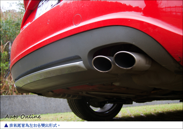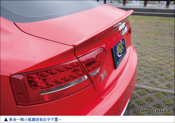 跟A4、A6這些標準四門房車相比,S5 Sport確實多出了不少的運動氣息。從車頭前緣向後劃出的車身肩線並非一路平直到底,而是帶有一點平緩弧度的波浪般曲線巧妙與前輪拱及C柱部分相互融合。車門下緣的折線也相當明顯,與後保桿的折線連成一氣,只要光線稍微有點角度就車身側面就可以清楚呈現光影變化,在視覺上有相當的加分作用。