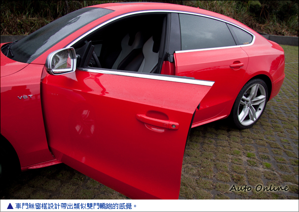就跟M-BENZ CLS、VW Passat這些車款一樣,A5 Sportback就是為那些要開中型四門房車,但是心中卻又希望那是部Coupe雙門轎跑車的人所打造的,讓車主在與家庭(尤其是老婆大人)的妥協之下仍然能夠給自己不安的靈魂一點慰藉。