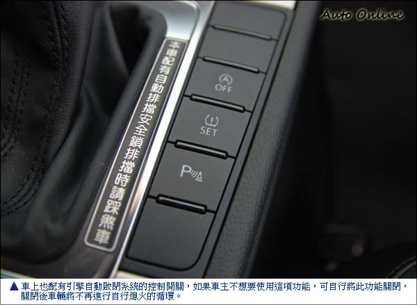 說到體貼,New Passat還有一項蠻體貼駕駛的配備,那就是按鍵式電子停車輔柱煞車系統,和目前較新世代的車款相同,New Passat以按鍵式來代替以往的停車輔助煞車拉桿,不僅節省了拉桿所需的作動空間,還一併安裝上踩油門便自動解除電子停車輔柱煞車的功能,以減少忘記解除停車輔助煞車的風險。