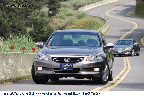 在8.5代的Accord在前保桿、水箱護罩以及霧燈處都做上有如拉皮手術的修飾。這樣的改變雖然不大容易察覺,但比較前款車型定心一看還是能體察其改變之處。此外在HONDA設定為主力商品的2.4級距當中還會有新款的輪圈可以搭配。
