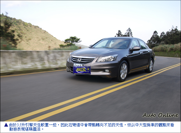 在山路連續彎道的行駛當中,Honda在5000轉時釋放的最大扭力即便1625kg的車重加上四位成人的體重卻絲毫沒有造成Accord的負擔,油門敢踩多深車輛就會低沉的傳入豐沛的動力來支援你,整個過程是順暢不躁進的。