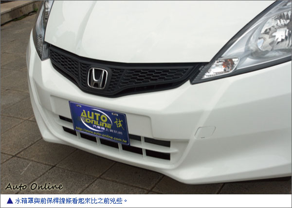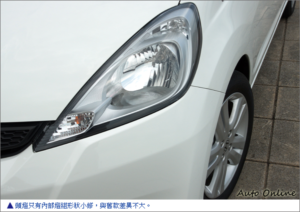 每次小改,車頭部分總免不了要被變動一番,新Fit車頭在細節上做了不少修改,如頭燈、前葉子板、前保險桿設計,VTi-S換新前霧燈式樣等,不過多半都是在線條(折線)上稍做變化,不仔細觀察大概也難分辨與舊款的差異。鋁圈部分VTi採用了五幅雙肋式樣,輪胎尺碼也升至與VTi-S相同的16吋,VTi-S則換上了新的五幅設計。