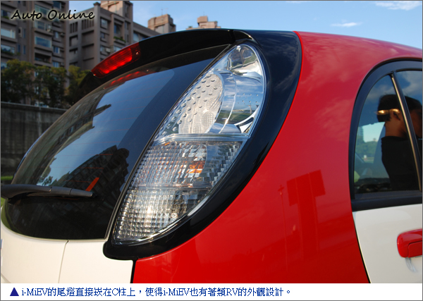 i-MiEV三角形狀的頭燈組,不過似乎未採用較為省電的LED燈泡。雖是K-CAR輕型自動車,i-MiEV的尾燈直接崁在C柱上,使得i-MiEV也有著類RV的外觀設計。