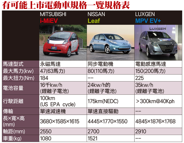 世界第一台量產販售的電動車i-MiEV抵台,不同於台灣現有的油電混合車,i-MiEV採用100%電力驅動設計,行駛中完全零排放,加上i-MiEV整合安全、能量效率、舒適性系統的i-MiEV系統的完美搭配下,更讓i-MiEV榮獲 2009~2010 日本年度車款「最先進技術獎」殊榮。