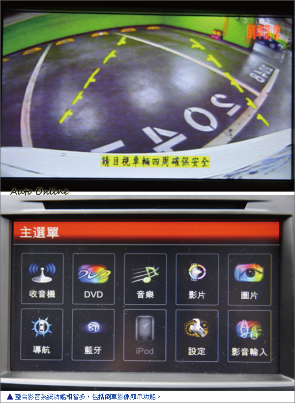 影音旗艦版果然不是白喊的,除了上面提到的配備,整合系統還支援USB/MicroSD輸入、直接控制iPhone/iPod等功能,實際操作藍牙系統,手機電話簿上傳、音樂播放和撥接都相當順利,沒有亂碼或雜音的問題,相容性很不錯。衛星導航因為內建陀螺儀,即使訊號受阻仍能提供導航,算是功能強大整合性很好的一套系統。除此之外,前座杯座置物格也是國產版獨有的配備,但也因此犧牲了中央走道的機能。