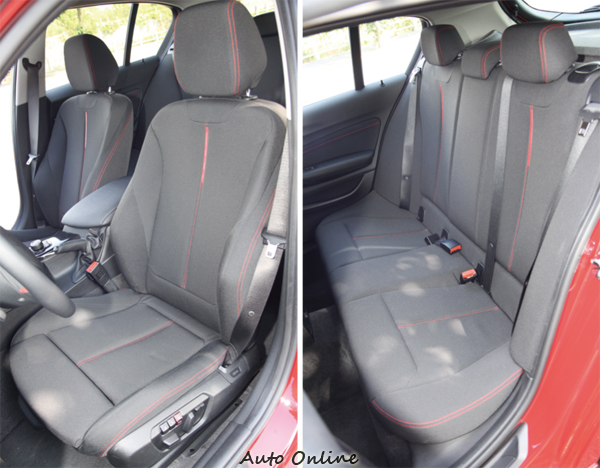▲綴以紅色縫線的Track高級織布跑車座椅,已升級選配價值79000元的電動調整記憶座椅。