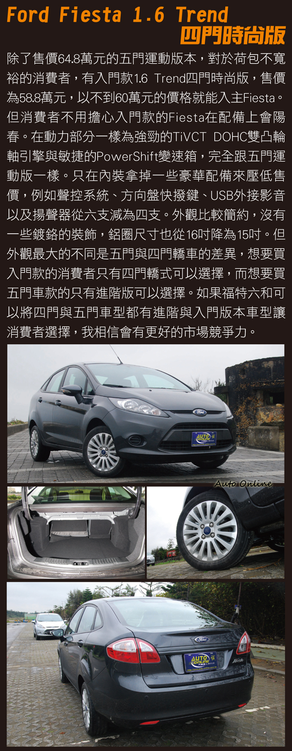 其實以先進口再國產的銷售策略有先例可循,早期Subaru Impreza就是先以進口來台灣試水溫,受到好評之後,就導入國產化,當時也是暢銷車款之一。不過講到國產化會有很多消費者擔心產品的品質是不是跟進口一樣,但其實說穿了,國產化也只是進口國外零件,台灣組裝;如果你問我台灣組裝的品質如何?如果在十幾二十年前你問我這問題,我會跟你說我沒有太大信心,但現在我會肯定的回答你,台灣組裝的品質絕對沒問題,「MIT」早已是國際聞名的優良產品,所以國產化的Fiesta在組裝品質上絕對沒問題。