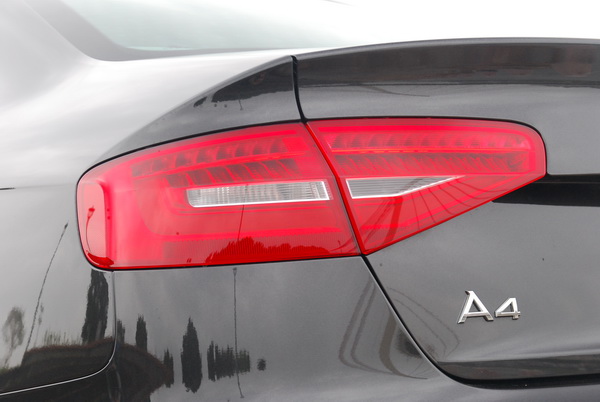 而A4車尾部分,全新造型的後保險桿加深立體折線,後保險桿下緣採霧黑塑料,而依不同車型後保險桿的排氣管也會有所差別,但改款A4的車尾造型並沒有車尾來的明顯與好辨別。但不得不說玩弄LED光源確實是Audi的強項,Audi將後尾燈導入LED光源並且重新排列,煞車燈、方向燈與倒車燈都為LED設計,每次亮起都讓A4散發出未來科技感。車尾刻意在後廂尾門上作出小鴨尾的感覺,不論它是不是對空氣力學有幫助,但在視覺上呈現出的感覺卻是大大的加分。