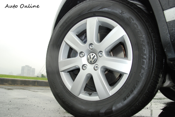 ▲七輻式造型鋁圈235/65R17輪胎規格,換上一組越野胎會更有樂趣。