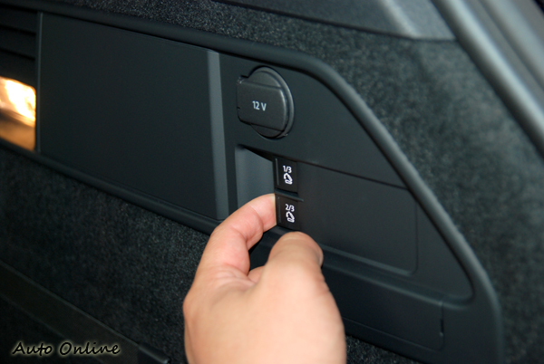 ▲後車廂空間寬敞,置物空間靈活度高;右邊有快速後座椅背傾倒按鈕。