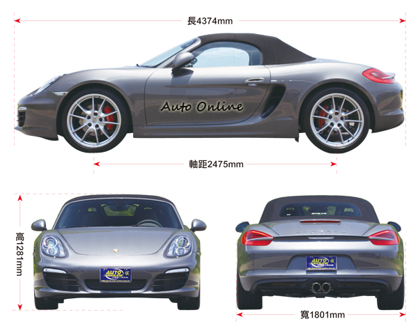 另一項外觀上比較無法一眼察覺的改變就是新的Boxster軸距部份來到2475mm也比前代成長了60mm。此外Boxster前輪距加寬 40 mm且後輪距加寬 18 mm,可使輪圈與車身對齊。前擋玻璃更低傾且向前延伸約 100 mm,車身高度也降低了 13 mm。 另一項突顯其運動風格外觀的要素在於車身比前代加長了 32 mm,同時前懸縮短了 27 mm。簡單來說新的Boxster更為低趴,更加短小精悍。