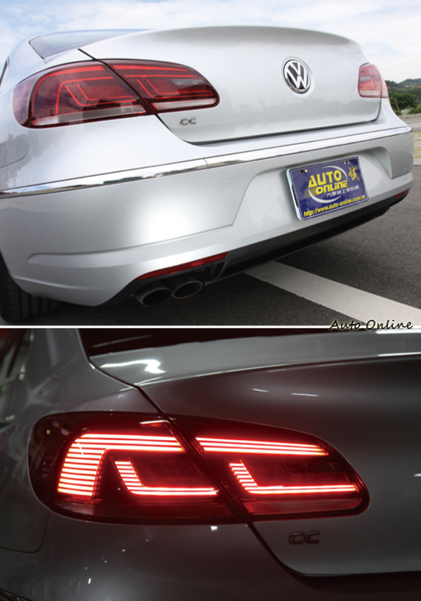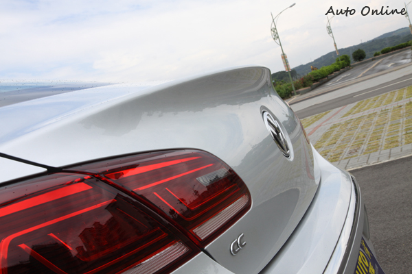 跑車+轎車=VW CC![]() ▲車頭的扮相維持VW該有的神韻,CC的車頭造型有向Phaeton靠攏。全新的Volkswagen CC在外觀上確實已經跟Passat沒有太多相似之處,筆者反而認為跟Phaeton比較雷同。車頭大面積的VW廠徽,加上橫條式的鍍鉻水箱護罩與兩邊內含LED日間行車燈的氙氣頭燈,讓全新CC有著更氣派的車頭扮相。引擎蓋折線從大燈兩邊延續上去,強調水平線條讓CC更為簡潔俐落。 ![]() ▲車側走的是高檔路線,運用鍍鉻飾條來提高質感,車體腰線明確醞釀動感氛圍。![]() ▲CC有著流線的車頂線條,向後延伸的C柱,讓車頂到行李廂形成一個漂亮的弧線。![]() ▲後車廂蓋的邊緣,刻意讓車身鈑件向上收尾,形成類似小鴨尾翼的感覺。![]() ▲後尾門中間有VW廠徽前後相呼應,左下角鍍鉻的CC車型字樣。尾燈頗有設計感,當燈光開啟時,會有類似CC字樣的光源顯現。![]() ▲馬牌的CSC3運動跑車胎,同時兼顧行車寧靜度與操控樂趣,尺寸為235/45R17。