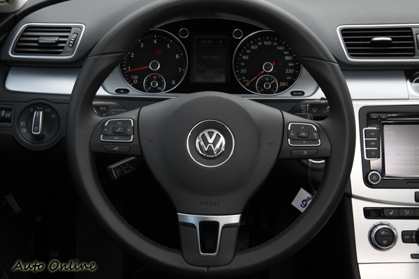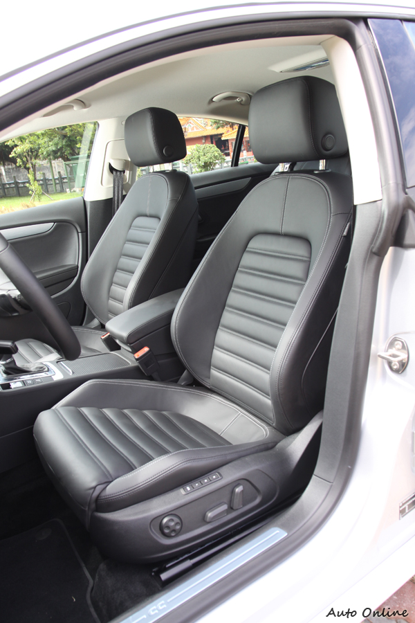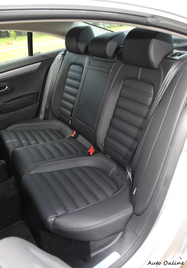 講究務實的座艙設計![]() 內裝部分沒有像外觀來的亮眼,大致輪廓還是跟Passat車型相同。金屬色澤飾板佔了中控台大部分面積,其餘部分為黑色的軟質塑膠。全彩多功能觸控螢幕,沒有配置衛星導航;音響下方為雙區的恆溫空調,操作介面為三顆旋鈕設計。兩大兩小圓設計儀錶板,中間有行車旅行電腦,可以監控車輛資訊,但只有簡體字版本,還未導入繁體中文。CC的整體內裝設計以實用為導向,沒有過多的華麗裝飾,一切講究務實。 ![]() ▲CC以四門Coupe著稱,所以包覆性好的座椅座椅是跑車該有的配備,雙前座採Nappa真皮包覆,並具備12向電動調整及記憶功能。![]() ▲方向盤大小適中在激烈操駕時,有很好的操作靈活性。![]() ▲後座座椅不再採用只能做兩位的設計,CC這次可以坐進三位成人,不會再讓第五位乘客以為你不載他是因為你不喜歡他。![]() ▲532升的行李廂置物空間,後座椅背可6/4分離,瞬間得到更大的置物空間。