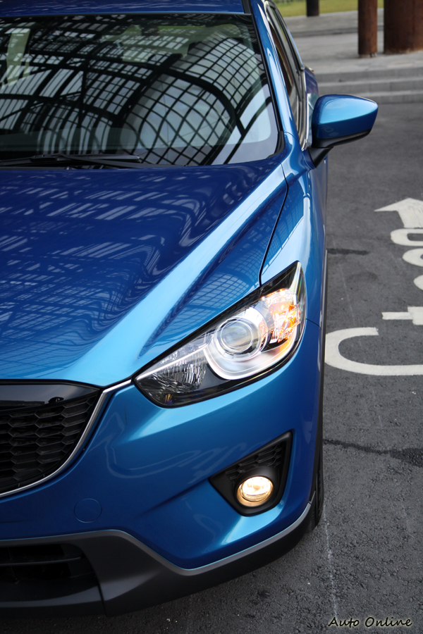 CX-5預定在台灣上市日期為10月11日,MAZDA Taiwan為了讓媒體可以槍先一步感受到CX-5的優質,在上市之前於宜蘭礁溪舉辦兩天一夜的試駕活動,兩天的行程中規劃路線讓媒體盡情體驗CX-5帶來的駕馭樂趣。第一眼看到CX-5會被他侵略性的車頭給震撼,有如獵豹眼睛般的大燈造型,加上大面積網狀的水箱護罩連為一體,車頭的神韻就像獵豹捕捉獵物的神情,車側的車身線條折線從前葉子板一路延伸到後尾門,明顯的折線就像獵豹上的肌肉,完全符合KODO的精神概念。