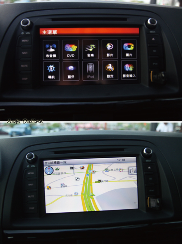 ▲中控台上方8吋的觸控螢幕,這螢幕全中文化並支援衛星導航、I POD與USB音源輸入,透過USB還可以撥放影片或者照片,讓全家出遊時在車上不會覺得無聊。