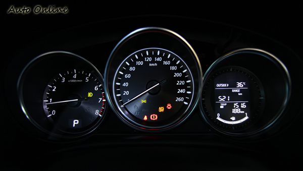 ▲三圓高反差儀表板,最右邊是旅行電腦顯示,可以顯示油耗、可行駛里程等資訊。