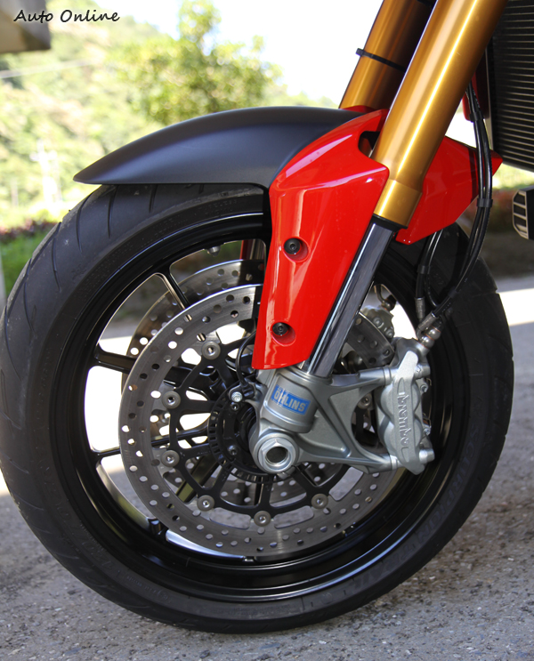 ▲前輪所使用的是320mm雙碟輻射卡鉗,並附有ABS。