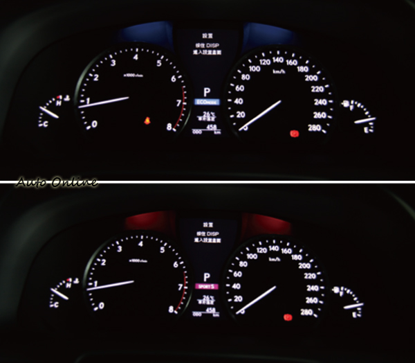 ▲不同的行車模式會有不同光源,ECO模式下儀錶板泛著藍光,切換到SPORT轉為紅光。