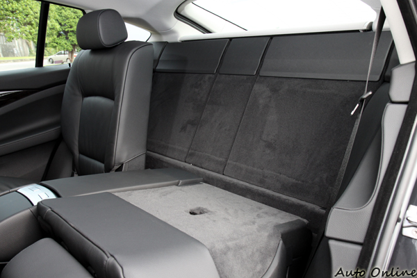其實掀背車款最怕乘客與行李廂之間相連,讓行李廂的噪音傳至整個車廂內,這點BMW設計團隊早料想到。5系列Gran Turismo在後座椅背後方與行李廂之間,設計層板來區隔,層板不僅區隔空間又能擋掉後方行李廂空間共鳴傳至前方的噪音,這樣的設計讓5系列Gran Turismo外表看似掀背車,實際確實正統的三廂式車型。