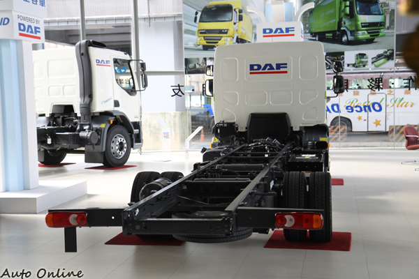 ▲進口貨車進來時就是這模樣,可以選擇想要的後軸,車體也可依需求在台灣打造。