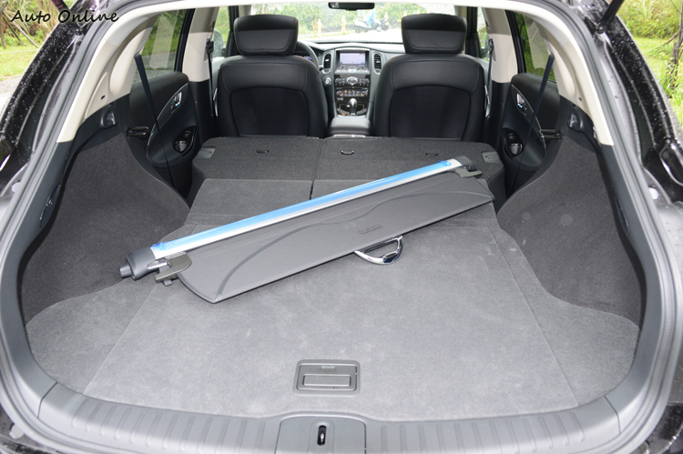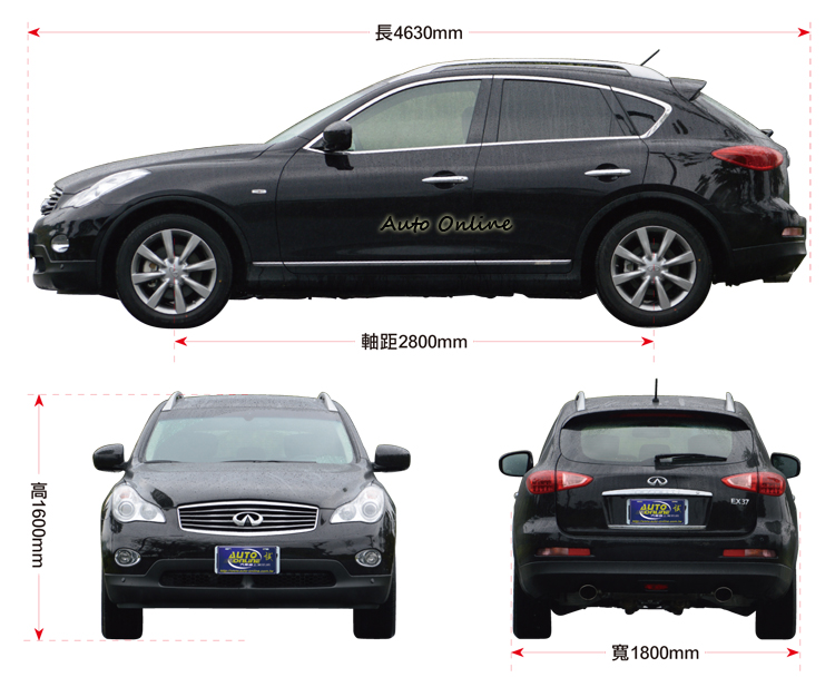 其他豪華配備還提供駕駛座10向/乘客座8向電動調整真皮座椅、BOSE音響與11具揚聲器,HID主動轉向頭燈、電動調整方向盤等。EX37也配備全車七組氣囊和TCS、VDC等輔助科技等。而另一個有名的安全配備就是AVM360度環景顯影系統,能夠切換不同視角,由螢幕上鳥瞰車身周圍狀況,這在容易出現死角的停車場、通過狹窄路段時特別管用。至於休旅機能上,雖然EX37的車室空間比不上大尺碼的SUV,不過後座便利貼心的One Touch摺疊/電動回復設計,僅需透過一個按鈕,就可操控後座椅背的摺疊與回復,讓女性買家也能優雅地完成擴充行李空間的動作。