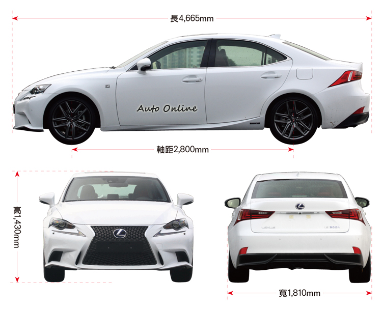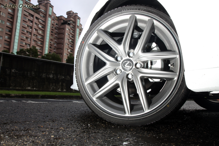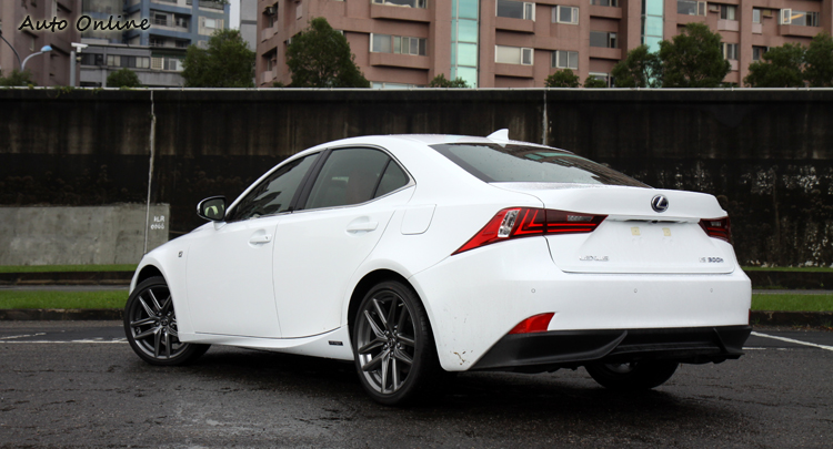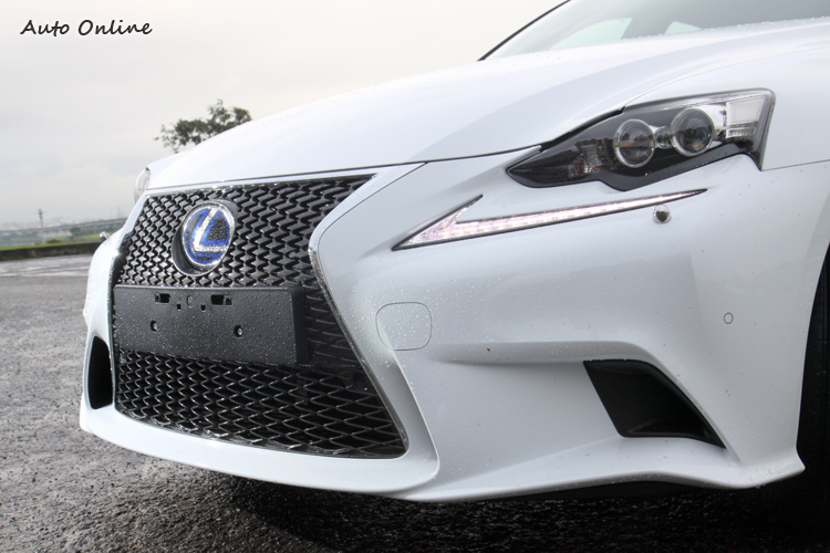![]() LEXUS IS車系在車齡歷史上算是較為年輕的,1999年出現第一代車型,俐落的外觀線條帶點運動跑格外觀設計,讓年齡層偏高的LEXUS品牌,吸收到年輕消費族群購買與喜愛。2005年第二代車型上市,明顯看出車身尺寸放大不少,造型上依舊承襲運動化跑格精隨,更在2007年推出極具強悍性能、操駕樂趣的IS F車型,性能版本的出現奠定IS車系在LEXUS品牌中,就是該極具跑格外觀、運動化內裝、帶有操駕樂趣的中型房車。 ![]() ▲F SPORT專屬的燻黑鋁圈,鋁圈尺寸採前後大小配置。運動化的F SPORT空力套件這次我們試駕的車款為全新LEXUS IS 300h F SPORT車型,與一般版本在外型上些微差異。F SPORT車型在車頭部分導入家族特色紡錘型水箱護罩,F SPORT在水箱護罩上採用一體式設計,這概念源自於LF-CC概念車上,但如果是一般版本的IS,水箱護罩會採用上半部橫柵式、下半部蜂巢式設計,跟F SPORT車型做兩者的區隔。水箱護罩兩旁有專門為煞車設計的散熱導風管,激烈操駕時將車頭撞風的冷空氣導至煞車卡鉗,降低煞車時所帶來的熱能。F SPORT捨去車頭的霧燈,利用更誇張的前保險桿線條來營造車頭的霸氣。![]() ▲全新LEXUS未來家族特色箭形LED日行燈,將會運用在之後的LEXUS車系。![]() ▲車側只利用簡單上揚線條與車尾結合,排氣管採隱藏式設計,個人覺得降低車尾的跑格味道。![]() ▲Hybrid車型會在300h使用藍色字樣,尾燈為低耗電率的LED光源。