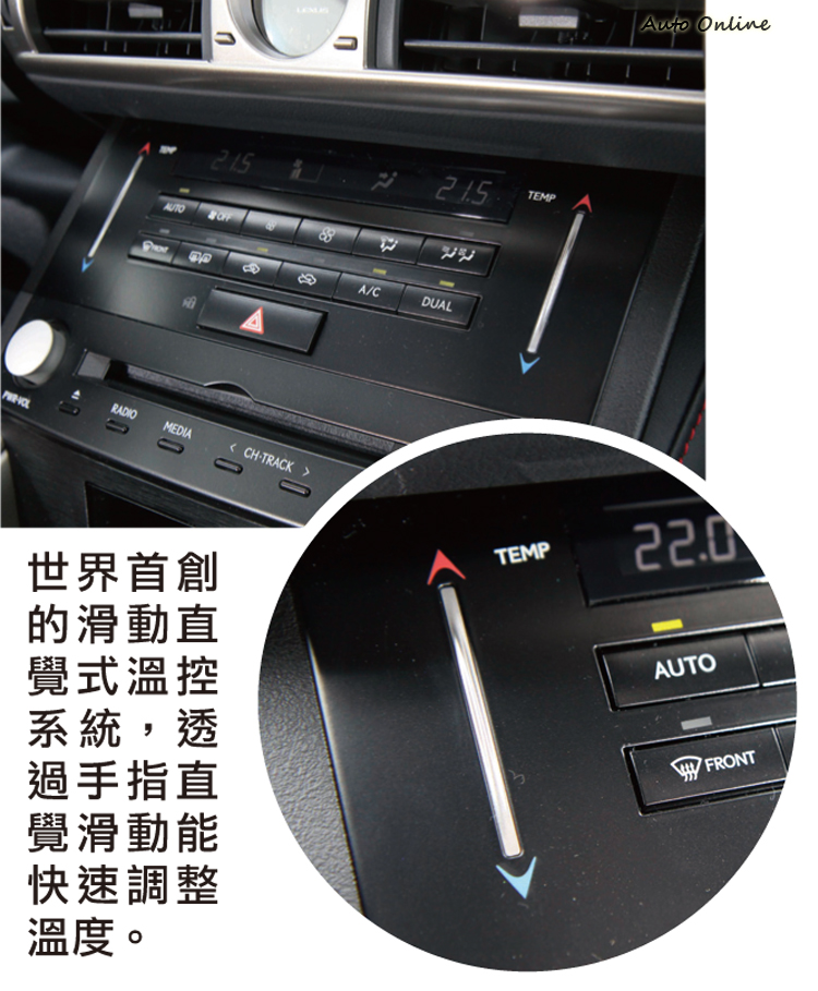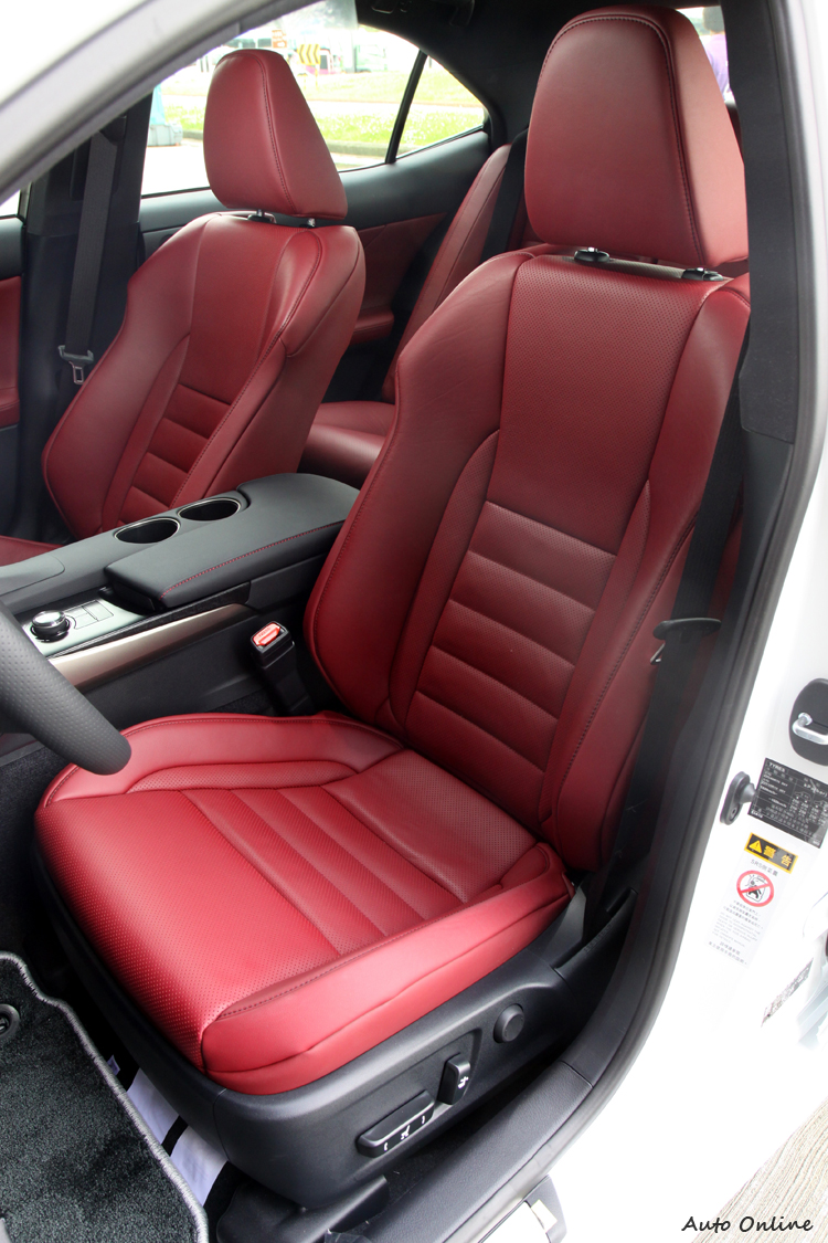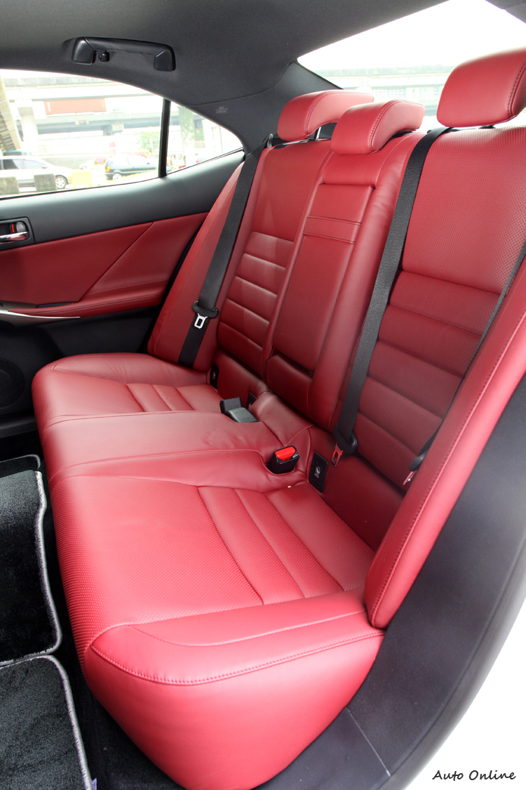 LFA單環數位動態儀表板![]() ▲類似LFA的單環數位動態儀表板,不同行車模式會有不同顏色,單環儀表還能左右滑移,露出的8吋LCD螢幕能顯示車輛相關資訊。打開車門,眼睛目光被車內兩張紅色座椅所吸引,採用一體式塑形工法製造,座椅兩側能有很好的支撐性與包覆性,坐上去可以感受到身體被牢牢包覆。整體坐姿與前一代相比下降1公分、向後2公分,更具有完美配重的駕駛姿勢。 ![]() ▲兩張火紅的跑格座椅,質感、包覆性都值得讚許。![]() ▲後座同樣採用紅色座椅,整體的空間比上一代寬敞。![]() ▲雙層式的中控台,傾斜的設計角度有點類似LFA超級跑車。![]() ▲方向盤左右兩邊有音響、儀表板選單操作介面,IS 300h F SPORT在右邊按鈕下方有搭載LDA車到偏移系統。![]() ▲金屬材質搭配真皮包覆排檔桿,排檔皮套還採用紅線縫製。![]() ▲中控台上方有7吋多媒體螢幕,螢幕整合Hybrid作動狀況、影音媒體、DVD撥放器,甚至可以透過USB或者藍芽系統來與手機連結。![]() ▲中央扶手內有USB、AUX IN的音源輸入,置杯架會受限飲料大小。