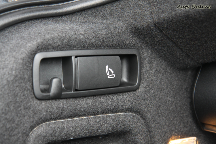 ▲後行李箱左右兩側設有椅背快速傾倒的按鍵,讓空間變化更有機能性。