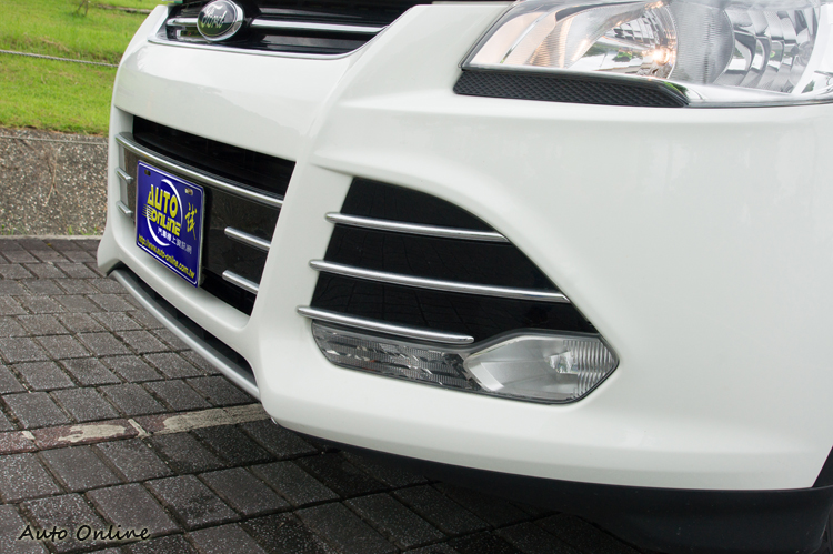 下方的大型橫柵式進氣壩以中央倒梯形搭配二側多邊形的手法來呈現,與Focus不同的地方是氣壩部分也有加入鍍鉻飾條來提昇質感。隱藏於氣壩之內的,是所謂的可變式進氣起閉系統,會依據車子的行駛速度,自動開啟/關閉內部的葉片,確保低速行駛時有足夠進氣量而高速行駛時則能減低風阻,提高油耗表現。