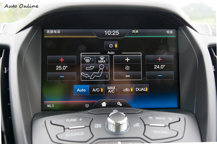 SYNC媒體通訊娛樂系統之前在新Focus上國內消費者就首次接觸到,現在再搭配MyFord Touch系統,用來操作車上系統功能的語音指令增加了一萬多條,透過儀錶板上的4吋LCD顯示幕與中控台中央的八吋彩色觸控式螢幕來瀏覽和操作,既便利又一目了然。或是習慣透過方向盤上的功能鍵來操作也很輕鬆,當然,用語音指令來聲控操作車上多項系統功能更是這套系統所強調的特點,動動嘴巴就可以撥打、接聽電話啦,切換廣播頻道啦、調整車內溫度高低與空調出風強弱等等。