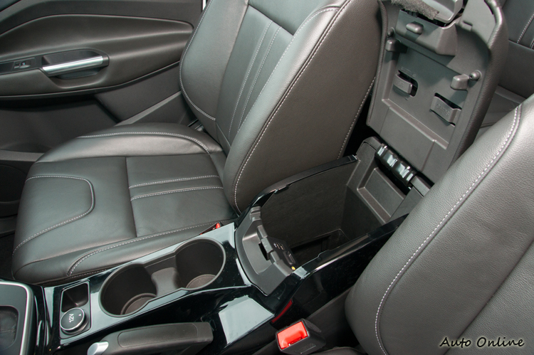 置物空間部分,車門置物槽雖然有配合整體做造型空間並不方正,不過要放600cc左右的飲料瓶或易開飲料罐還不成問題,且前後座中央扶手都有飲料架,車上坐滿人也不怕飲料沒地方放。中央扶手下方的置物槽空間有相當的縱深,塞一堆零碎雜物很好用。