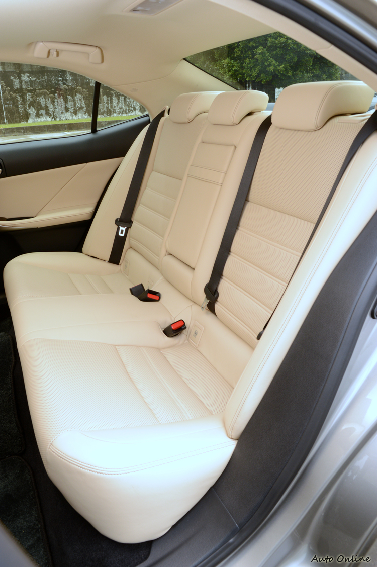 內裝LF-CC、LFA的影子![]() ▲中控台有LF-CC與LFA的影子,中央扶手設計有置杯架,但會受限飲料杯大小。至於內裝,試駕車款搭配米色與黑色兩種顏色,原廠在內裝顏色有四種搭配可以選擇。 ![]() ▲內裝為米色與黑色搭配,原廠有四種配色可選擇。![]() ▲儀表板改雙圓設計,因為沒有油電系統,左邊那顆顯示為轉速表,有SPORT、NORMAL、ECO三種模式。![]() ▲儀表板中間可以顯示即時的車輛資訊,也能顯示導航狀態。![]() ▲因為拉長的軸距,全新IS後座空間相當寬敞。![]() ▲IS 250後行李箱無須放置電瓶,但改良過的電瓶位置,兩者行李廂空間只相差30L。
