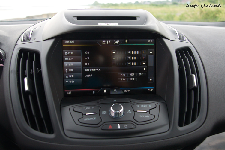 要走都會路線,就不能沒有3C科技感,所以福特在Kuga上同樣相當強調SYNC with MyFord Touch的影音通訊功能介面。除了可以透過方向盤上的多功能按鍵或是在螢幕上觸控操作外,最「炫」的是只要按下聲控指令按鈕說出聲控指令,就可以直接操作空調、音響、電話等功能。