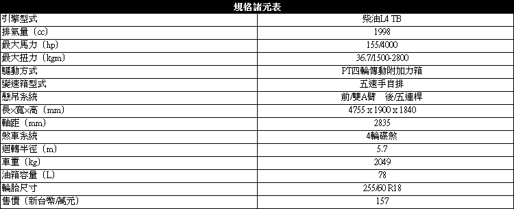 小心運轉![]() ▲步入第三代的Rexton W引擎不再用過去的2.7升柴油引擎,改用新的e-XDi 200引擎。這次試駕的Rexton已經是步入第三代的作品。回顧車系發展最早於2001年以RX320汽油引擎的身分在台灣亮相。到了2004年台灣再度開放柴油小客車進口後雙龍打出柴油元年的口號,把一代小改款的RX270XDi導入台灣。2007年時二代Rexton問市,但同樣使用2.7升的柴油引擎。 ![]() ▲三代Rexton引擎的輸出品質與行路性已經和過去印象中的粗造爛製不可同日而語,已經是有國際競爭力的產品。過去由於賓士與雙龍在有合作關係,因此早期雙龍也樂稱自己是韓國賓士。但隨著雙方在五年前合作中止,現在打開引擎室已經看不到有M-Benz字樣了。但幾年光景下來SsangYong功夫學到了,不管是由過去的引擎基礎加以改良也好,還是100%韓國研發也罷,就目前的回饋來說新的e-XDi 200在國際市場上是受到好評的。 不過Korando不過1749kg的車重,七座之姿的Rexton W車重已經來到2710kg,讓人直覺的懷疑兩台車用同一顆引擎真的夠力嗎?實際上路的結果來看由於引擎設定在1500轉時即輸出36.7kg的峰值扭力。雖然最大馬力僅155匹,但雙龍認為具備越野能力的Rexton W不需要偏重高速域的延展,因此車輛開起來起步反應輕快。到了高速公路段拉轉到120km/h同樣是一派輕鬆,再往上爬升的速度上升雖較慢但也不到氣喘吁吁的模樣。 值得嘉許的是車輛搭配上源自賓士的E-Tronic五速手自排變速系統,運轉品質不輸歐系車廠的柴油休旅,肅靜性也頗佳,讓人有幾日不見刮目相看的感覺。此外縮小排量的另一項用意在於提升油耗表現,根據官方提出的數據綜合油耗每公升可跑12.8公里,以七人休旅來說是相當不錯的表現。