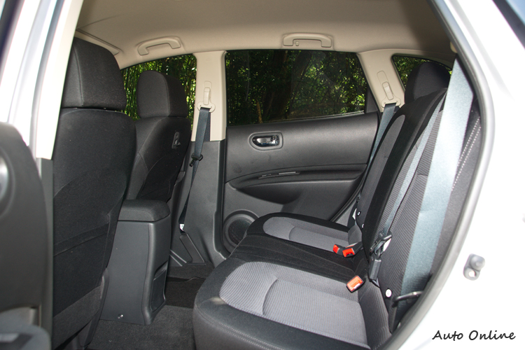 整個駕駛介面連續性的規劃會對於駕駛者產生適度的包圍感,讓駕駛者在開車時可以很就手地操作車內系統。不過可別誤會筆者的意思,在乘坐空間上,Rogue的表現並不差,可沒有侷促的感覺,以身高170公分左右的中等身材乘客來說,頭部與車頂間可有二個拳頭的空間,後座腿部前後空間也相當充裕,美中不足的是后座中央的隆起對於乘客在後座的移動會有些影響。