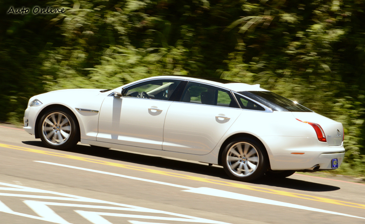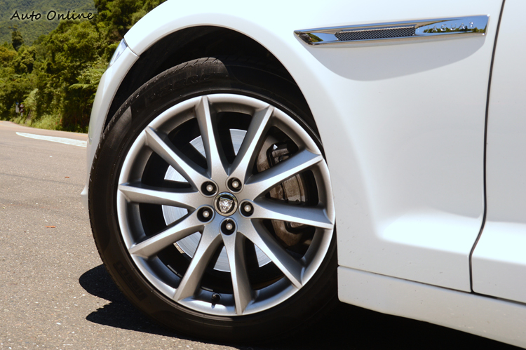 ![]() ▲車頭大面積的鍍鉻水箱護罩,營造出高質感氛圍。實際坐上車發動引擎,引擎啟動瞬間沒有太過於激昂的啟動聲浪,證明這顆2.0L渦輪增壓引擎走節能設定,以及XJL的隔音做的頗具水準。發動引擎的同時,Jaguar特殊的旋鈕式排檔緩緩升起,將檔位轉到D檔,輕踩油門出發。起步的瞬間加速平順,但是當你重踩油門時,還是會感受到輕微的渦輪遲滯,在引擎轉速2500rpm以下,XJL就像溫馴的綿羊,當轉速高過2500rpm時,渦輪開啟整個加速感受完全不一樣,不過在渦輪開啟與未開啟時的落差銜接不夠平順,如何拿捏好油門,是車主或者代勞駕駛必須先學習的課題。 ![]() ▲車尾有XJL的銘牌,從外觀很難分辨2.0L渦輪增壓車款。![]() ▲十輻式設計的鋁圈造型,前葉子板也有鍍鉻飾條裝飾。![]() ▲加速這方面絕對難不倒2.0L渦輪增壓的XJL,輕鬆直上180km/h不拖泥帶水。懸吊部分,XJL Premium Luxury前後採獨立式雙A臂結構,後懸吊還多了氣壓式自動平衡系統,抑制過彎時車身的側傾,聽到抑制過彎時的側傾不要聯想到山路,這套系統並非給激烈操駕使用,最主要目的是增加乘坐的舒適性,山路真的不是XJL該站上去的舞台。