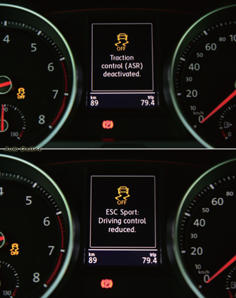 XDS介入 兩段式ESP 樂趣無法擋諸多數據都證明了GTI搭載第三代EA888引擎以及重新調校的底盤有更優異的性能,不過口說無憑,當然要實際試駕。Golf GTI真的是一部很好上手的小鋼砲,第七代導入許多新技術,再加上瘦身成功,加速表現非常輕快,透過換檔撥片,掌控各區域轉速的加速反應,跟六代相比,動態表現輕盈,加速度明顯變快。在山路上,微微轉動方向盤就能有不錯的車頭指向,車尾依舊保有穩定輪胎循跡,透過方向機的修正與XDS Plus進階版主動式防滑差速器(透過煞車增加穩定性與準確度),七代Golf GTI顯得靈活許多,尤其是在多彎的山路上,給駕駛多幾分信心繼續踩下油門。 ![]() ▲七代Golf GTI 的ESP電子輔助系統增加Sport模式,輕按一下解除ASR加速防滑系統,按住3秒進入Sport模式。![]() ▲數位單圈計時器,最多可記錄10圈的單圈成績,並顯示最佳單圈、最慢單圈、平均單圈。