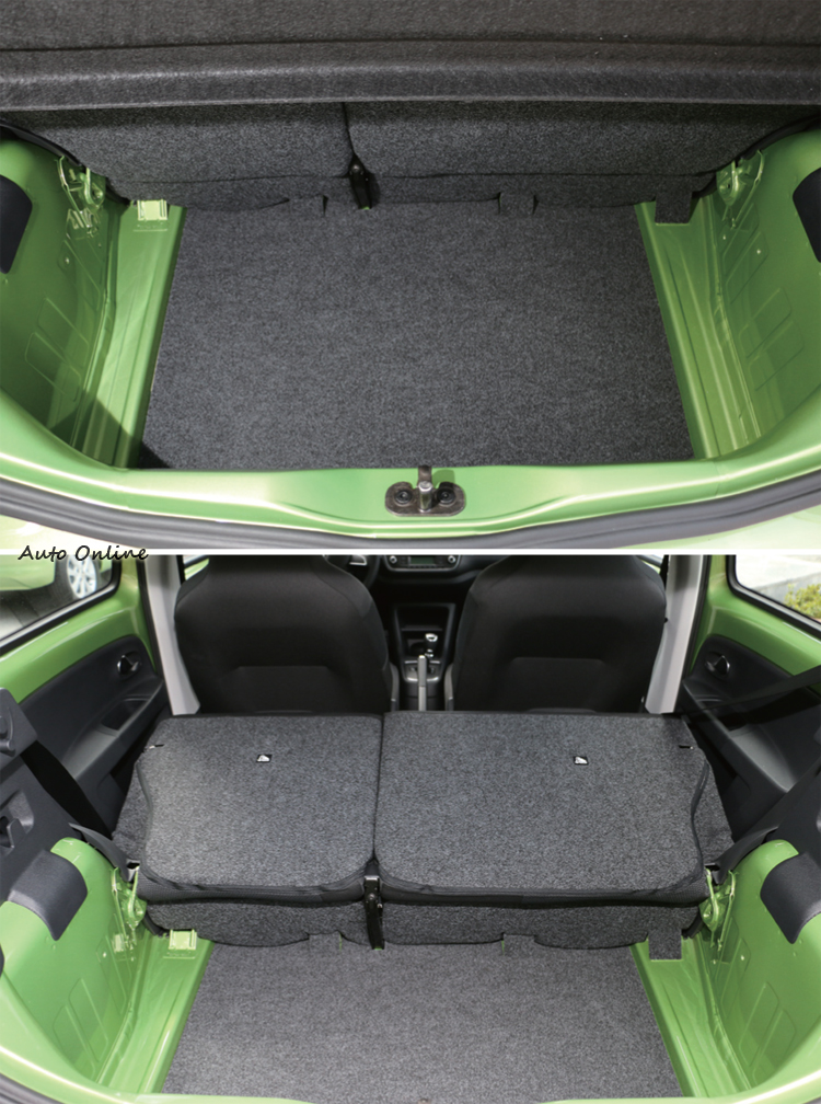 ▲未放倒前後行李箱縱深一般但高度夠深,後座椅放平後可從原本的234公升的容積延伸至942公升。