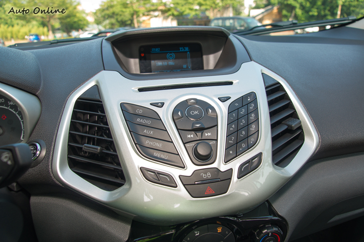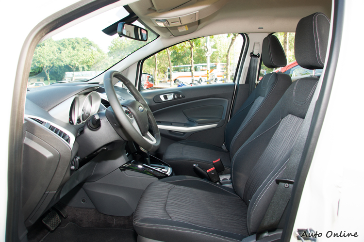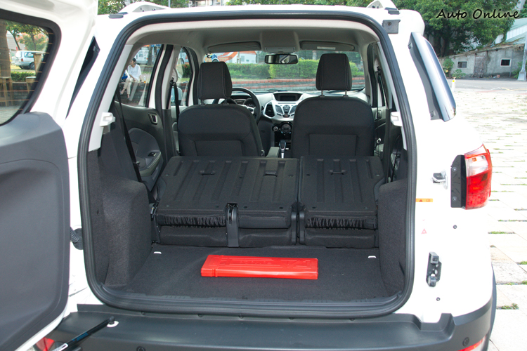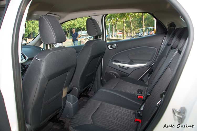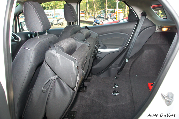 內裝...還是Fiesta風格![]() 一坐進EcoSport車內,一道強烈的似曾相似感覺立刻襲上心頭,不仔細分辨還真以為是坐在Fiesta之上,但仔細觀察一下仍然可以看出一些細節的差異。 ![]() ▲中控台螢幕跟Kuga等大哥相比雖然陽春些,也無觸控功能,但透過中控台或方向盤控鍵操作還是很直覺。![]() ▲恆溫空調介面與Fiesta相似但透過飾板來提升質感。當然,福特近年來強打的SYNC中文娛樂通訊整合系統也可以在EcoSport身上見到(雖然是功能比較陽春的版本),讓車主透過藍牙、USB或Aux-in等方式來與行動裝置連接,更可以透過聲控方式手不用離開方向盤就直接撥打/接聽電話或播放特定音樂曲目,除了方便以外視線不離路面也避免了意外發生的可能性。 ![]() ▲前門置物槽裡面有可收納折疊傘的隱藏空間。空間機能更多樣多樣化的空間設計與置物機能大概是另一個EcoSport可以強調它不光是小車,而是「輕休旅」的著力之處。例如前門置物槽除了飲料架外還有可以收納折疊傘的縱深隱藏空間,手套箱具有空調出風保冷功能,副手座下方有隱藏式折疊置物盒,前座中央沒什麼空間設置置物槽,就規劃成三個可放600ml瓶罐的飲料架供前後座乘客使用。![]() ▲副手座下方也有隱藏式置物盒。![]() ▲座椅包覆性普通,不過織布材質本身對身體的固定性就比皮質好。![]() ▲後座乘坐二名成人空間會比較剛好,椅背可以做三段式調整。![]() ▲後座椅可以整個向前翻,最多可以讓行李空間達705公升。![]() ▲一般狀態下行李廂空間為346公升。