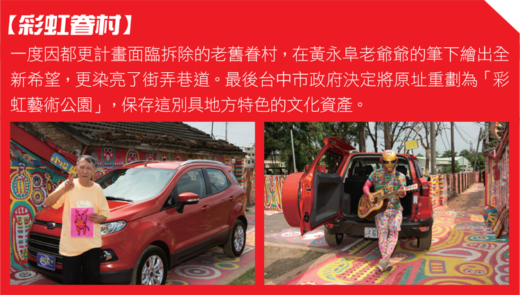 福特汽車今年在國內的最後一波產品攻勢─EcoSport小型SUV即將在11月正式發表,為了及早與消費者溝通它的「都會輕休旅」訴求,特別在配備、價格都還沒公布的發表會之前,先讓媒體以休閒的心態,駕著EcoSport探索台中幾個個具不同文化與歷史背景的景點,來一段輕休旅的探索體驗。