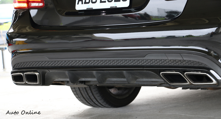 ▲車尾能夠辨識身份的地方,包括左右四出鍍鉻雙尾管,以及黑色分流器。